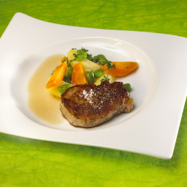 - Tailler le filet de veau en tranches de 2 centimètres d'épaisseur, le saisir dans le reste de beurre