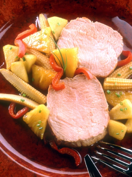 - Faire sauter ensemble les morceaux de pommes et d'ananas dans le beurre et un peu de miel.