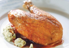 - A l'aide d'une poche à douille, farcir l'intérieur de la pintade;